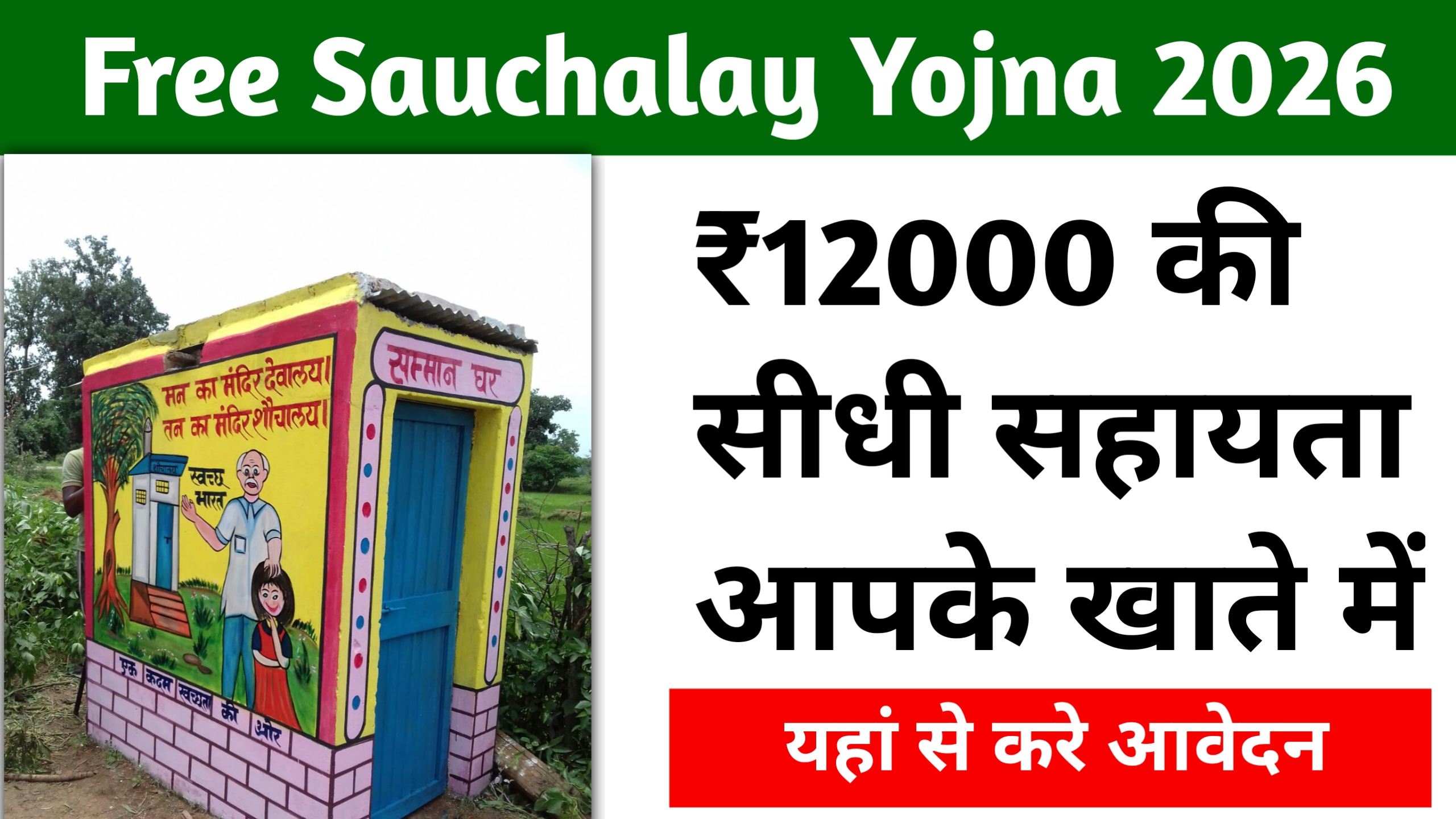 फ्री शौचालय योजना 2.0 सरकार की एक बहुत महत्वपूर्ण और लाभकारी योजना जिसका उद्देश्य हर घर में शौचालय उपलब्ध कराना है अगर आपके घर में अभी तक शौचालय नहीं है तो यह आपके लिए सुनहरा मौका हो सकता है ₹12000 की सीधी सहायता पाने का