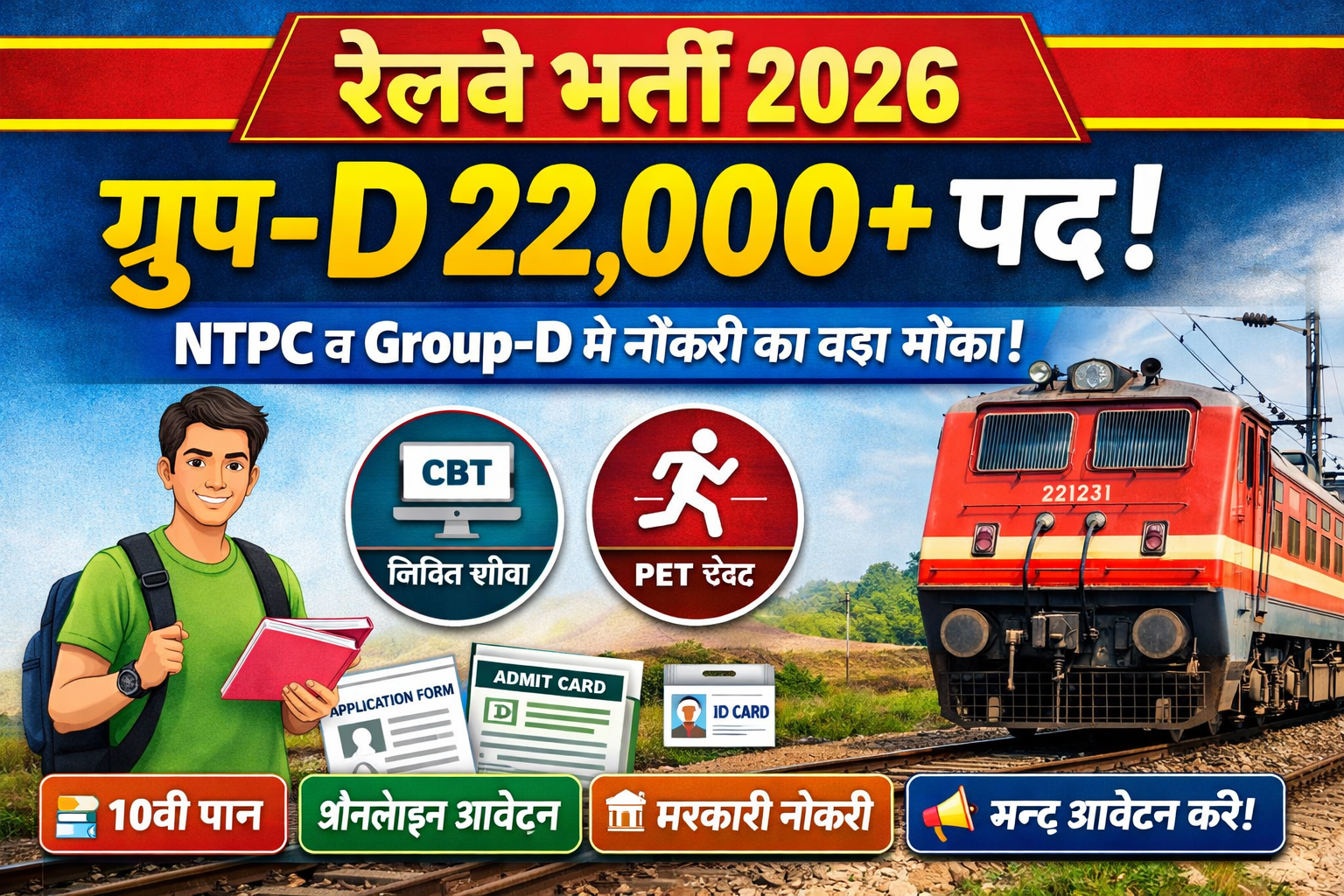 Railway Recruitment 2026: ग्रुप-डी 22,000+ पदों पर भर्ती शुरू! जानें NTPC और Group-D के लिए आवेदन की पूरी प्रक्रिया