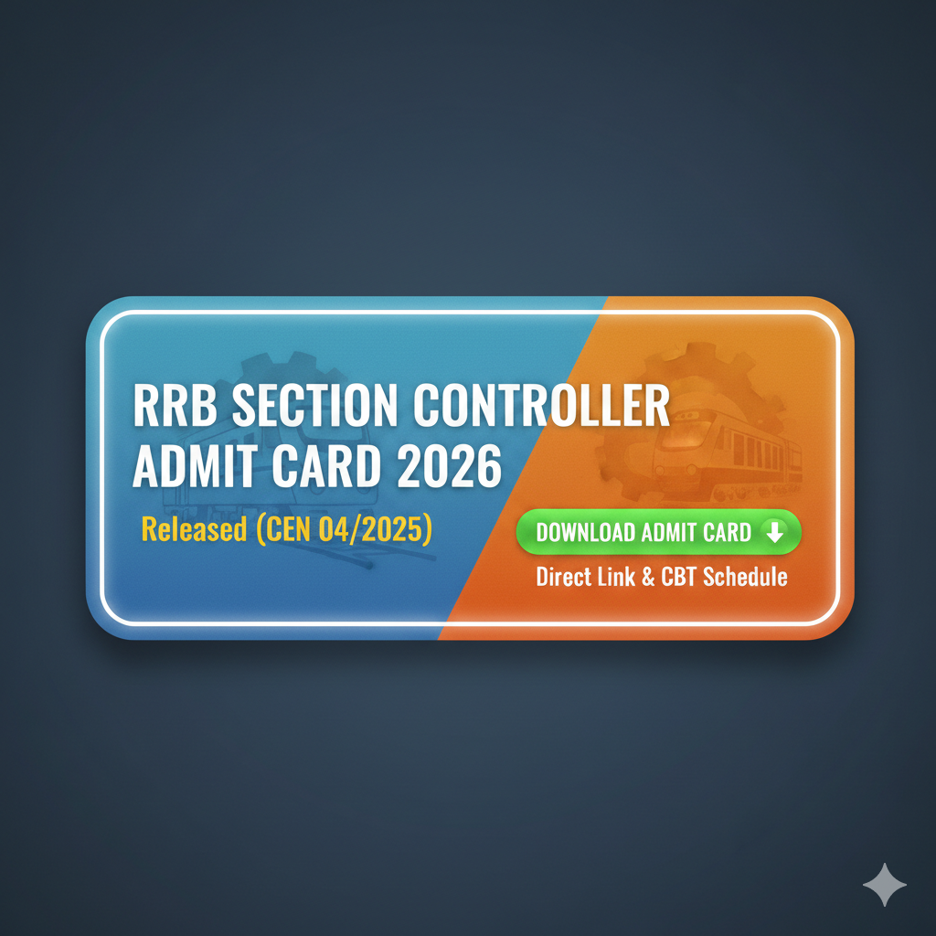 रेलवे में सरकारी नौकरी की तैयारी कर रहे उम्मीदवारों के लिए बड़ी खबर सामने आई है रेलवे भर्ती बोर्ड ने RRB Section Controller भर्ती के लिए वर्ष 2026 की CBT परीक्षा का एडमिट कार्ड जारी कर दिया गया है